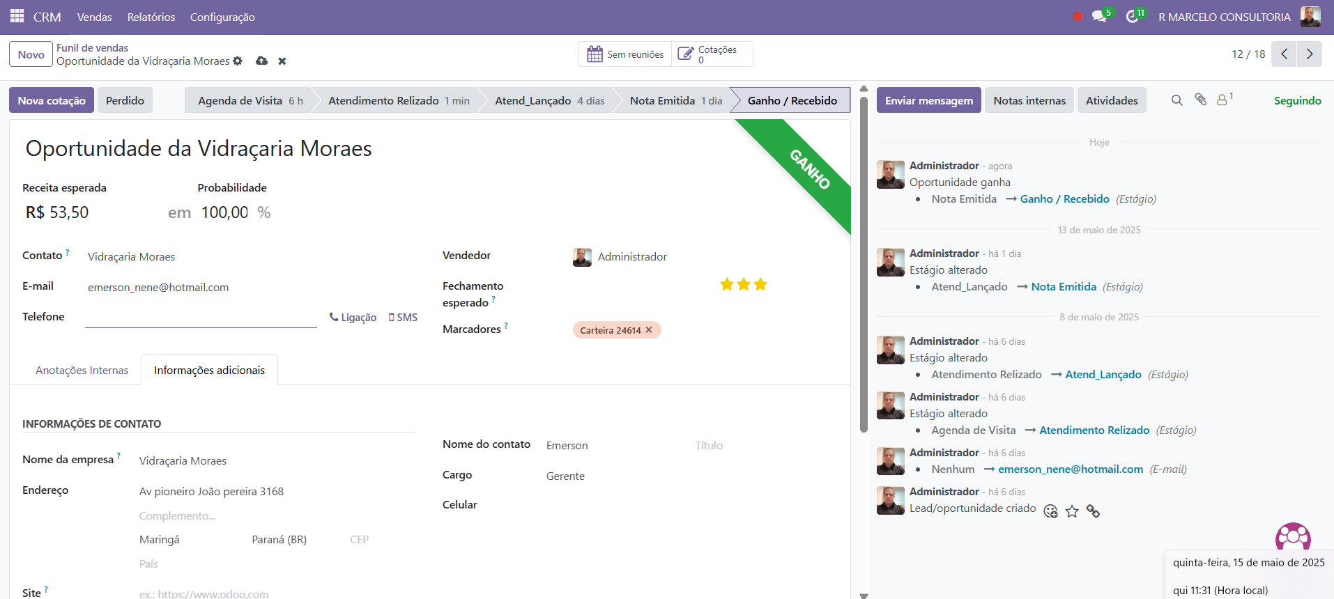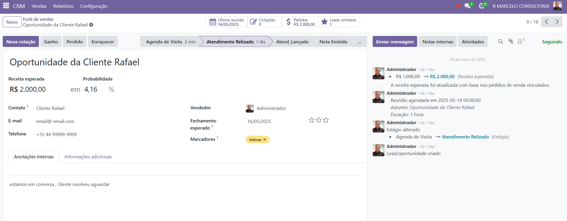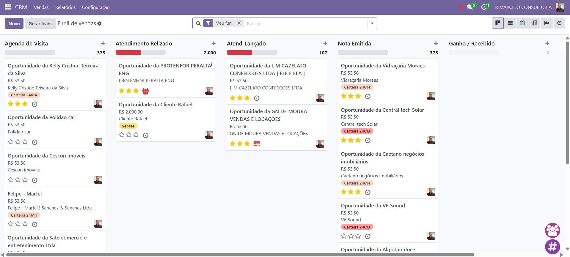 - Arrastar e soltar oportunidades entre as fases do funil.